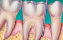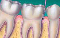 Periodontitis ili pyorrhea je skup inflamatornih bolesti koje utiču na periodoncijum, tj. tkivo koje okružuje i učvršćuje zube. Periodontitis uključuje progresivan gubitak alveolarne kosti oko zuba, i ako se ne leči, može dovesti do većeg klimanja i gubitka zuba. Periodontitis uzrokuju mikroorganizmi koji prianjaju i razmnožavaju se na površini zuba, zajedno sa previše agresivnim imunim odgovorom na te mikroorganizme. Dijagnoza periodntitisa se uspostavlja posle pregleda mekog tkiva (desni) oko zuba pomoću sonde (kliničkog ispitivanja) i procenjivanja pacijentovog rendgenskog snimka (radiografskog ispitivanja), čime se određuje količina kosti koja se gubi.