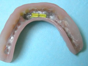 Preostali zubi su povezani prečkama a preko njih se spajaju proteze sa klizačima